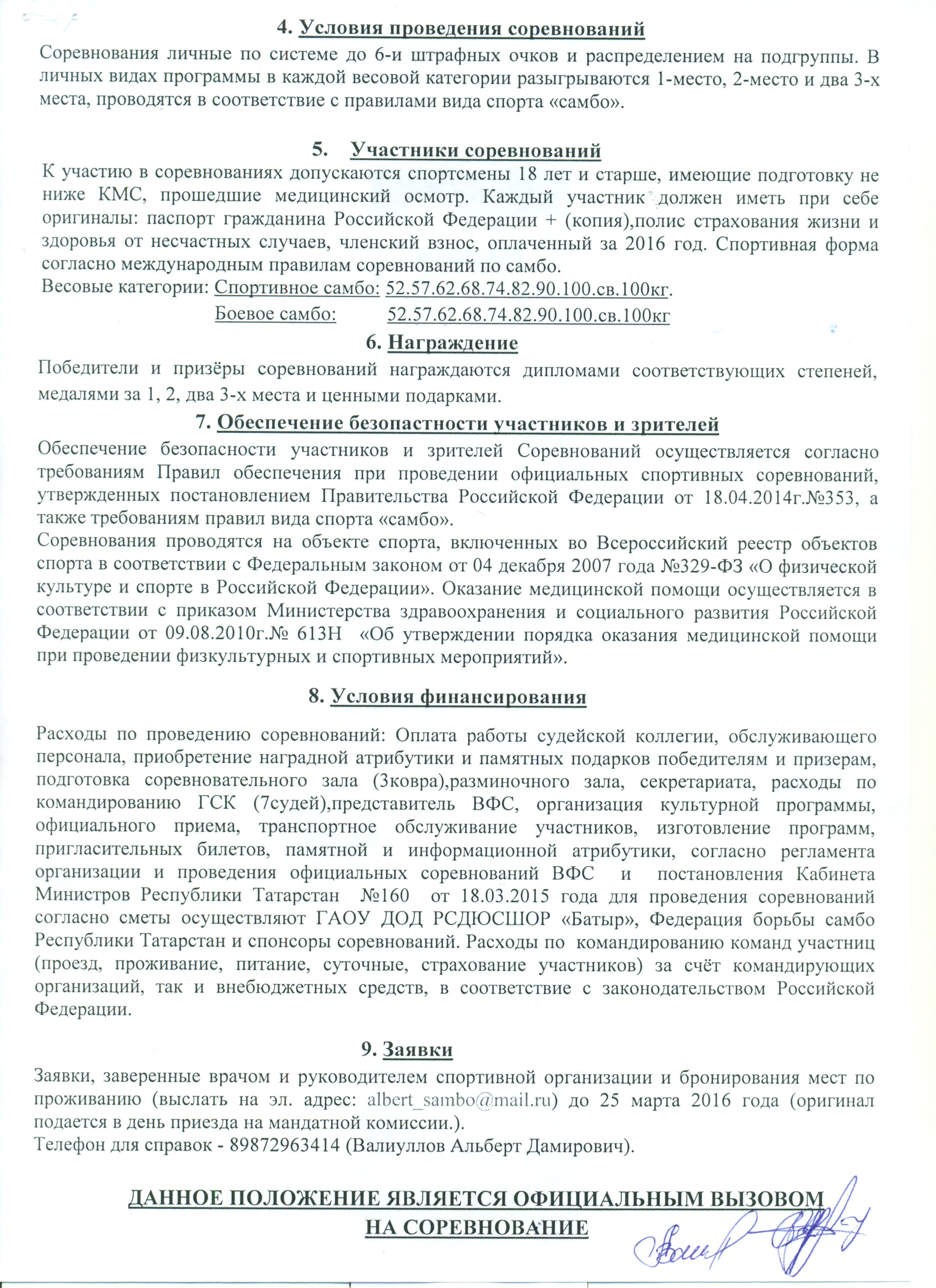 Положение о проведении XXVI всероссийских соревнований по самбо, посвященных памяти мастера спорта международного класса Накипа Мадьярова, часть 2 (973.5 КБ)