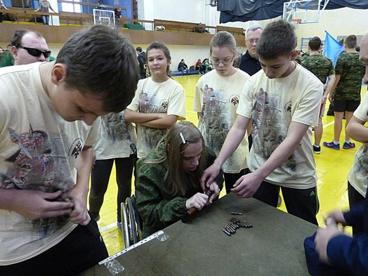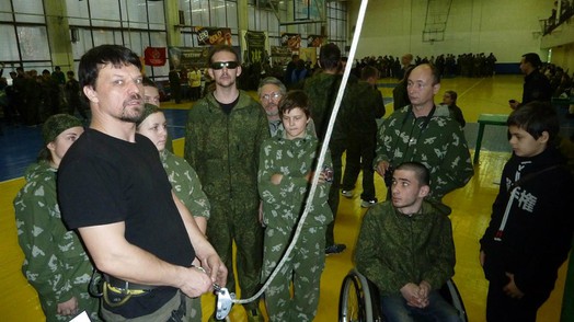 12 Декабря в Спорткомплексе «Кристалл» города Лыткарино Московской области, состоялся четвертый этап турнира «Кубок Памяти Павших Бойцов Спецназа и Специальных подразделений», посвящённый светлой памяти иерея Дмитрия Александровича Шередекина, основавшего Военно-патриотический клуб «Восход». Открыл соревнования заместитель Главы города Уткин Антон Юрьевич, с теплыми приветственными словами выступили почетные гости. Перед началом соревнований гостям и участникам соревнований были представлены показательные выступления команд ДВПК «Боец» школы № 5 г.Лыткарино и ДВПК «Прометей» г.Москвы. Четвертый этап турнира 2015 года стал особенно запоминающимся и важным, поскольку впервые в турнире по военной подготовке приняли участие ребята с инвалидностью по зрению: слепые и слабовидящие спортсмены, а также воспитанники Сергиево-Посадского детского дома для слепоглухих. Мужеству и желанию этих ребят и девушек можно только позавидовать. В соревнованиях приняли участие 15 команд из Москвы, Лыткарино и других городов Московской области. В каждую команду входили ребята с инвалидностью, слепые и слабовидящие ребята и девчонки, которые наравне со всеми прошли все этапы соревнований. Участники турнира соревновались в стрельбе из винтовок и пистолета, метании ножей, скалолазании, одевании на время специальных средств защиты, сборке и разборке оружия, написании боевого листка. Слепой самбист Валерий Ларионов и Юлия Васильева продемонстрировали отличный результат по метанию ножей, а одними из самых быстрых скалолазов оказались тотально слепые скалолаз Роман Костяков и самбист Дмитрий Клюквин, а слабовидящая самбистка Анна Кибальчич показала отличный результат в общефизической подготовке и интеллектуальном конкурсе. Также при разборке и сборке оружия слепые и слабовидящие участники также показали хороший результат. Соревнования включали в себя также творческий конкурс и викторину с вопросами по борьбе Самбо и военной подготовке. Автором вопросов викторины для участников соревнований стал главный редактор журнала ВОС «Наша жизнь» Владимир Дмитриевич Бухтияров. При подведении итогов общим решением членов жюри и организаторов было установлено, что четвертый этап турнира «Кубок Памяти Павших Бойцов Спецназа и Специальных подразделений» 2015 года прошел успешно. Первое место в общем зачёте заняла команда ДВПК «Восход» руководитель Кузнецов Александр Петрович, эти же ребята и заняли первое место среди команд Лыткарино, им и был присужден специальный переходящий кубок, на втором месте оказалась команда гимназии № 4. По окончании соревнований был организован концерт, где все желающие выступали с песнями, стихами, постановкой трюков.