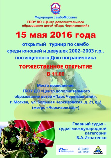 Положение о проведении открытого турнира по самбо среди юношей и девушек 2002-03г.р., посвященного Дню пограничника (44.0 КБ)
