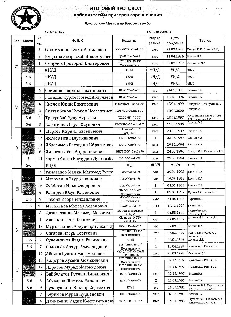 19 октября в спортивном комплексе НИУ МГСУ проходил Чемпионат Москвы по боевому самбо на призы Ильи Лазаревича Ципурского. В турнире приняло участие более 100 бойцов, представляющих разные школы и стили.